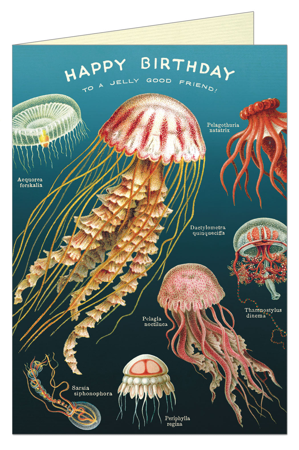 Cavallini & Co. Happy Birthday Jellyfish single birthday card is blank inside and ready for your personal birthday message!